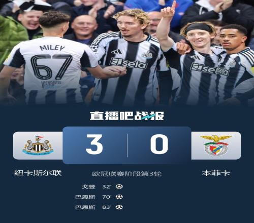10月22日欧冠联赛阶段第3轮纽卡斯尔联vs本菲卡全场录像