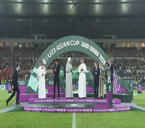 国足U23将帅上台领奖↓
