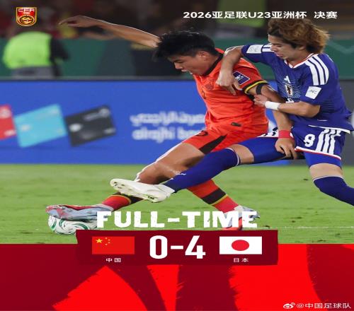 中国足球队官方表示:在刚刚结束的2026亚足联U23亚洲杯决赛中,中国队以0比4负于日本队,与冠军失之交臂。