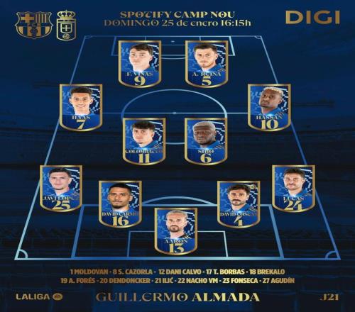 北京时间1月25日23:15,西甲联赛第21轮,巴塞罗那坐镇主场迎战皇家奥维耶多,赛前双方公布首发: