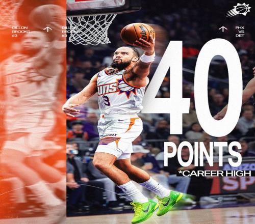 太阳伤停了杰伦格林、德文-布克两个核心后卫,没想到他们可以在主场114-96大胜东部第一的活塞,狄龙成为太阳第一核心22中13+三分7中4拿到40分8篮板4助攻,太阳拿到二连胜,他们稳稳压制勇士,勇士依旧是西部第八。